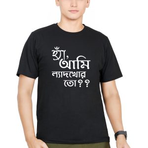 Haa Ami Ladyhkhor To | Bengali T-Shirt for Men | Half Sleeve | Round Neck | 100% Cotton | Printed Black T-shirt | Casual T-Shirt
