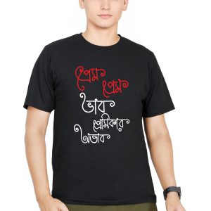 Prem Prem Bhab Premikar Obhab | Bengali T-Shirt for Men | Half Sleeve | Round Neck | 100% Cotton | Printed Black T-shirt | Casual T-Shirt