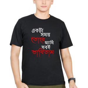 Ekta Samay Tore Ami Sobi Bhabitam | T-Shirt for Men | Half Sleeve | Round Neck | 100% Cotton | Printed Black T-shirt | Casual T-Shirt