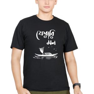Bariye Dau Tomar Haat | Bengali T-Shirt for Men | Half Sleeve | Round Neck | 100% Cotton | Printed Black T-shirt | Casual T-Shirt